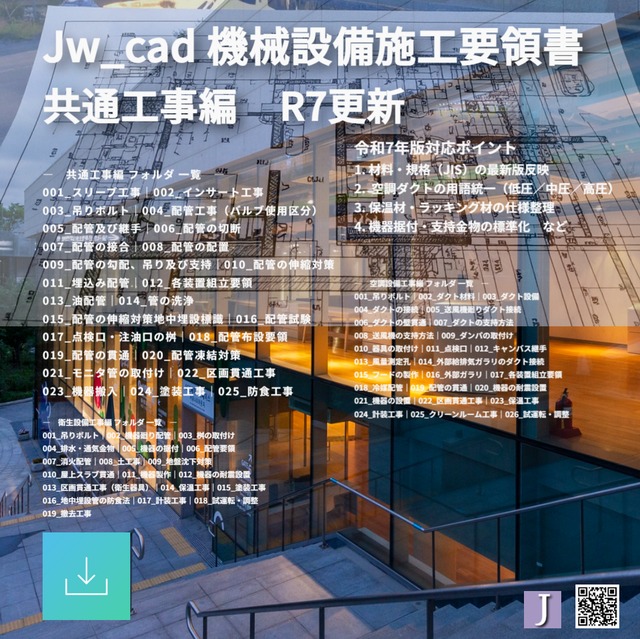 【R7更新版】共通工事編|Jw_cad 機械設備施工要領書|ダウンロード版