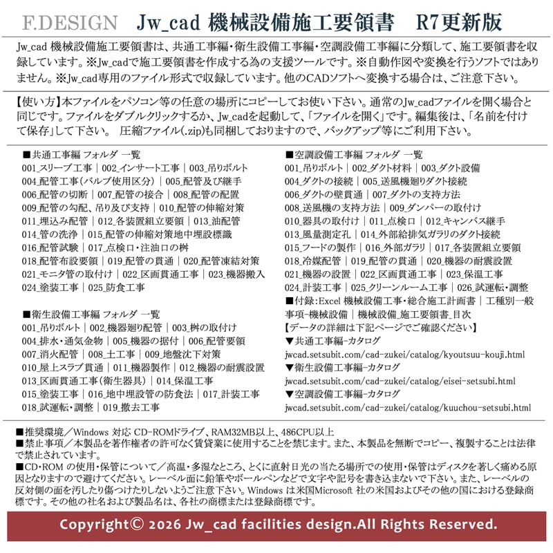 【R7更新版】共通・衛生・空調|Jw_cad 機械設備施工要領書|CD版